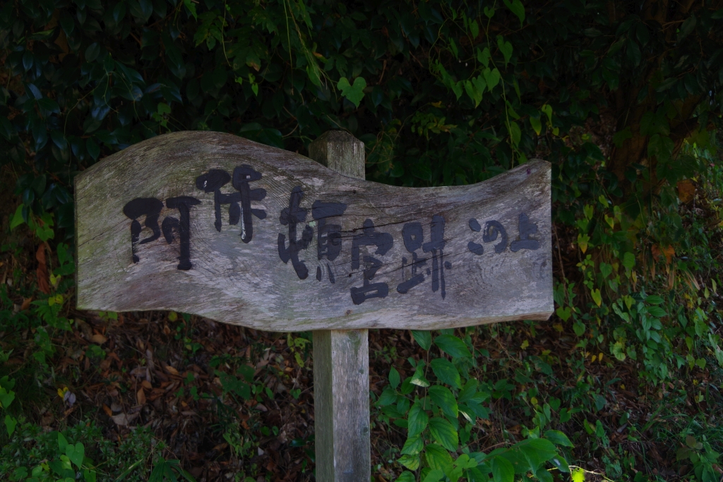 阿保頓宮跡には誰が設置したのか手作り感満載の看板が掲げられています。看板の「この上」って・・・