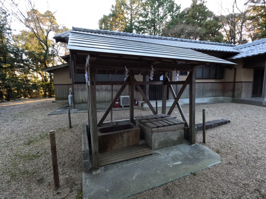 切妻銅板葺き木造四本柱タイプの手水舎になります。水盤の横に井戸が設けられています。この井戸は未だ現役なのだろうか・・。