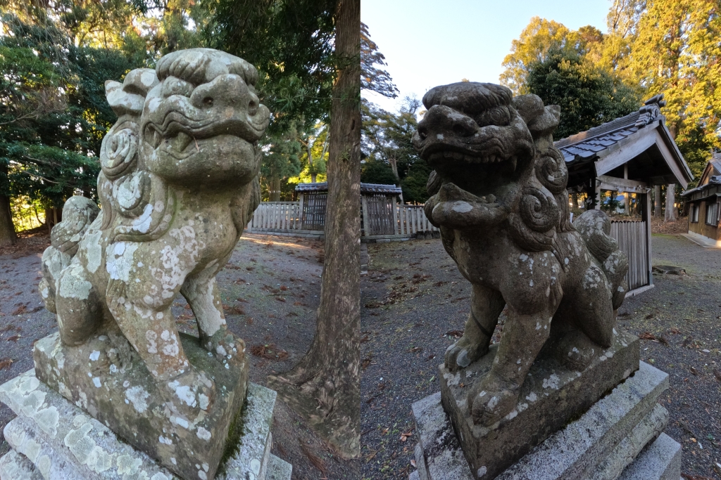 石造狛犬一対になります。全体の彫の深さから明治後半から大正期頃の生まれかなと思うのですが・・。