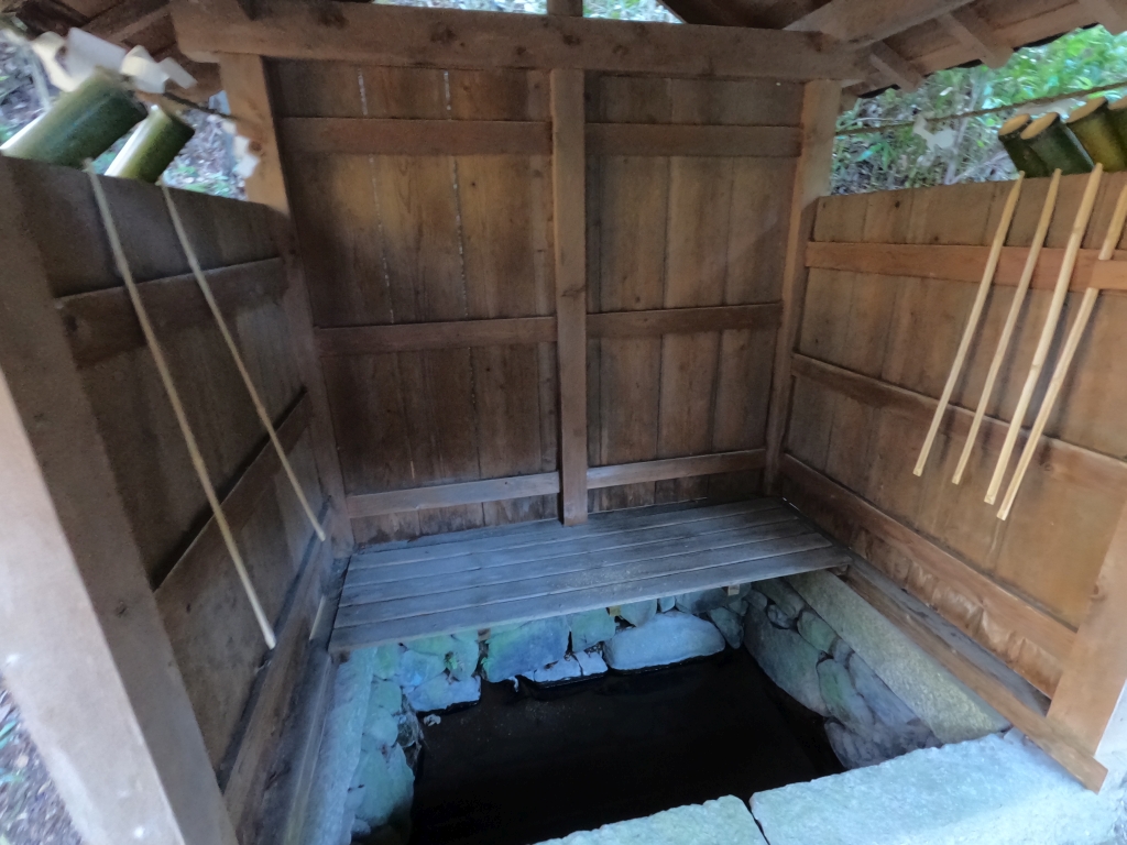 たぶん湧き水だと思うのですが、井戸の様な様式で竹で造られた柄杓を使って手水をするようになっていました。これも中々珍しい様式なのでは?