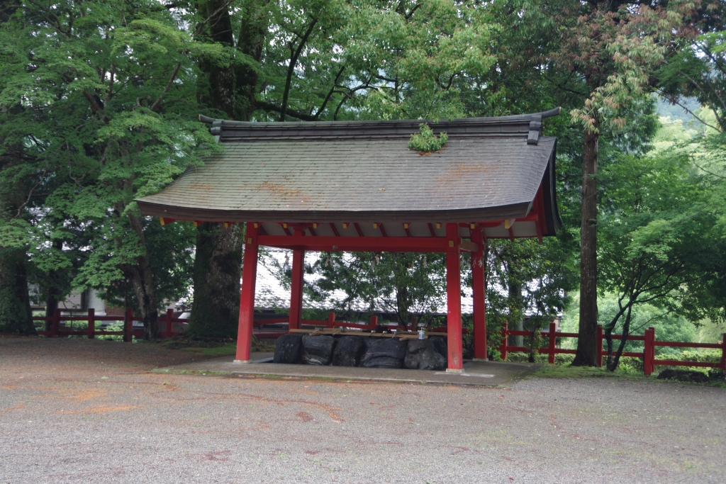 切妻銅板葺き四本柱タイプの手水舎になります。北畠神社は建築物の多くが朱色となっているのが特徴ですね。