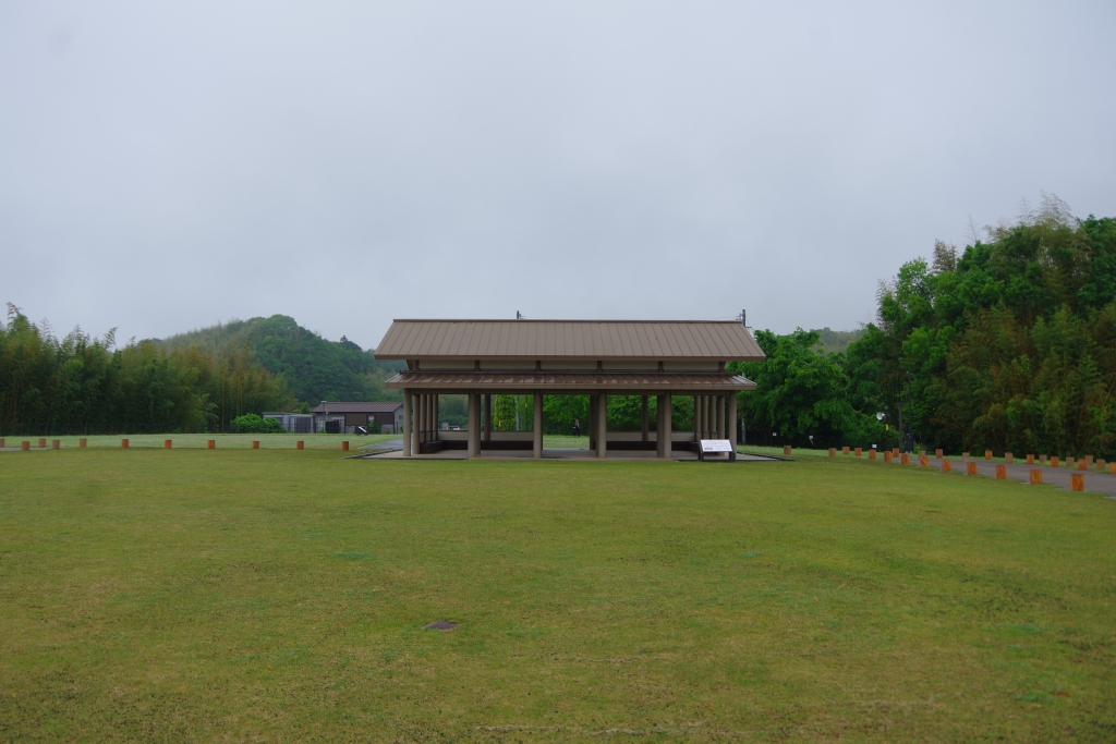 ちょっと引きぎみな写真になってしまいましたが、政庁跡の建物も再現されています。柱跡から写真の様な建物であろうという事だそうです。当時は壁も当然設けられていたでしょうから、もっと建物然していたんだとは思います。